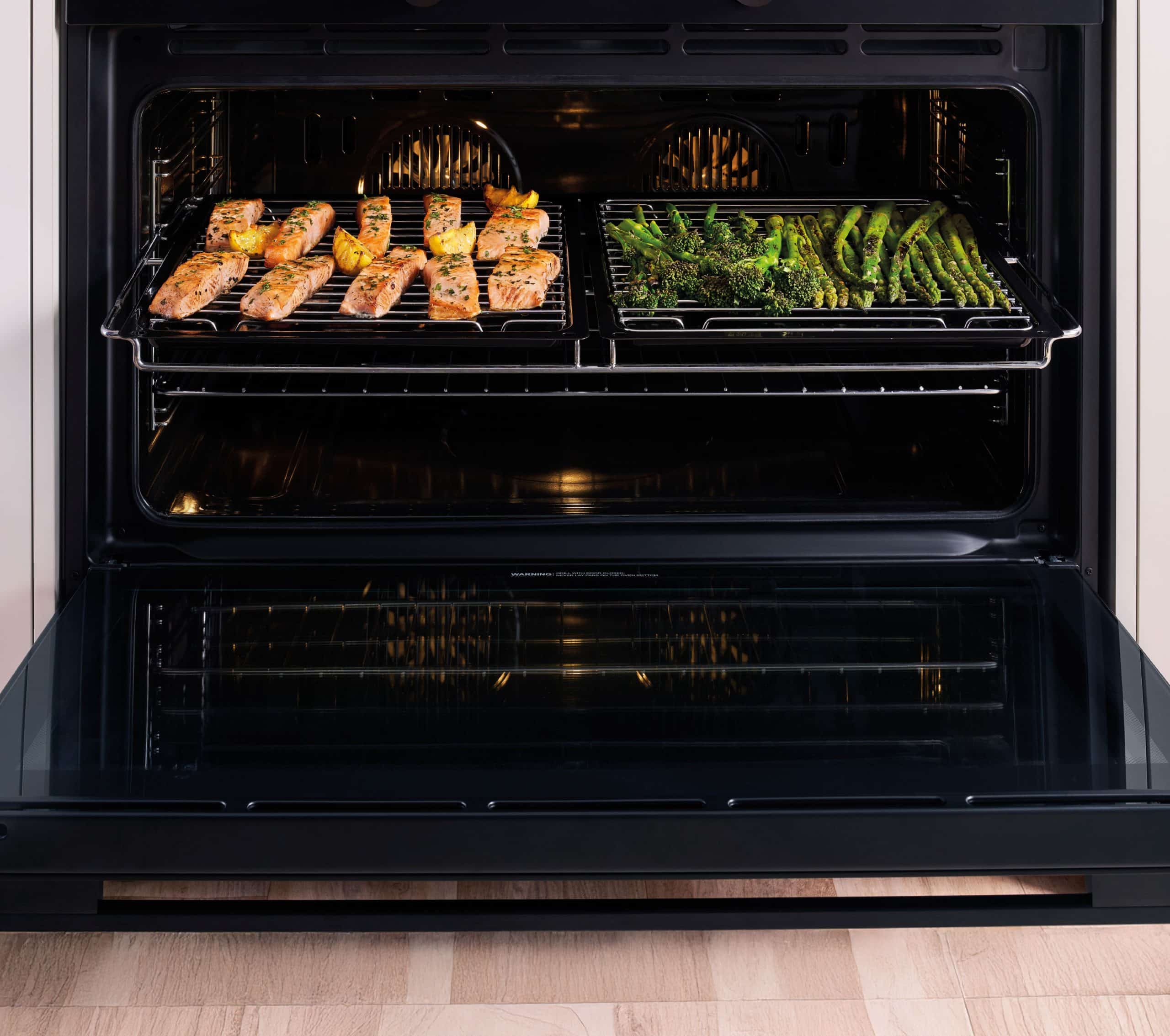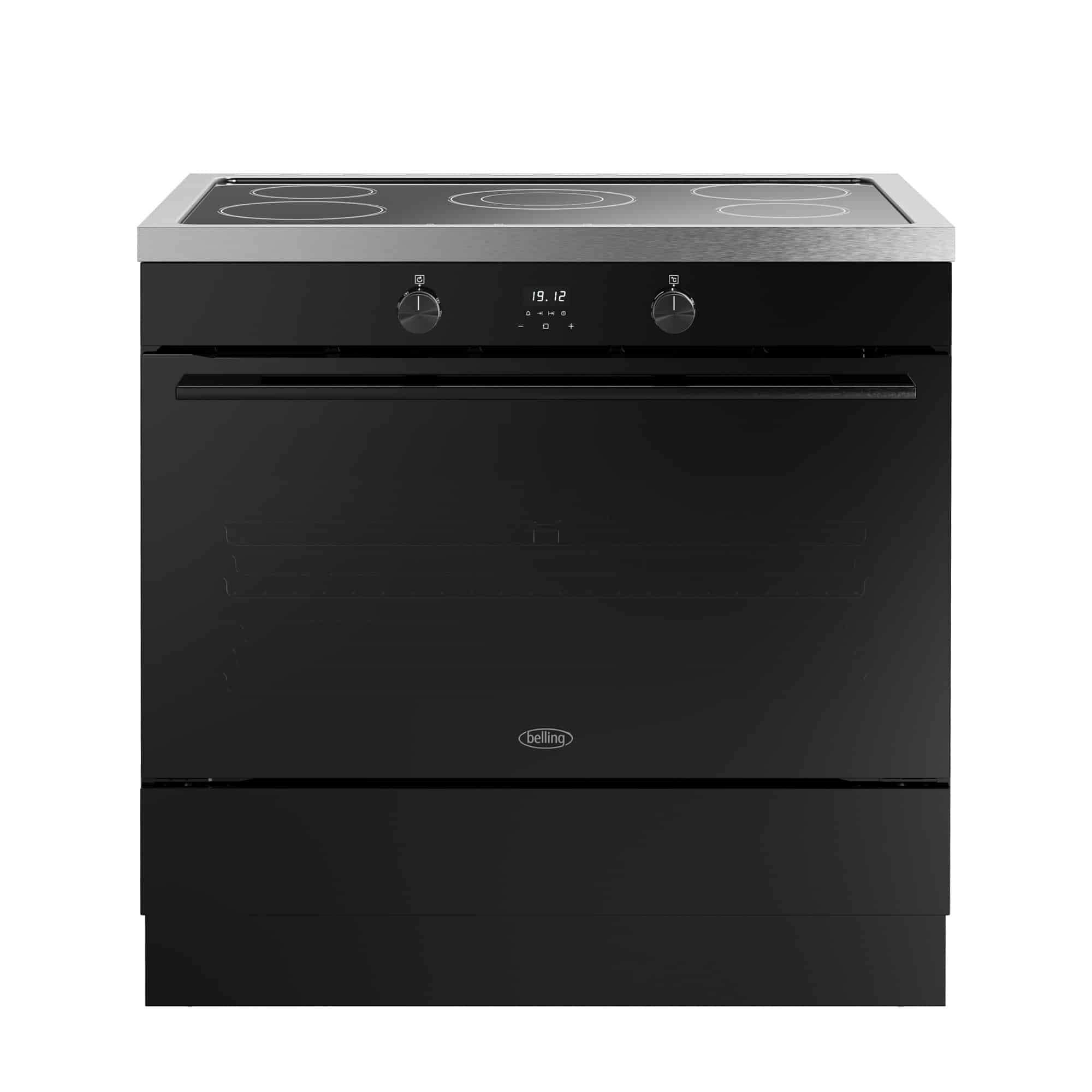 90 cm breed, energieklasse A / A, 5 inductie kookzones, elektronische timer, geforceerde koeling, aansluitwaarde 10,1 kW, afmeting fornuis (b x d x h) 900 x 600 x 880/935 mm.